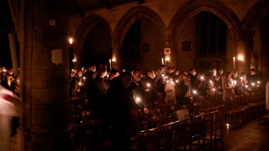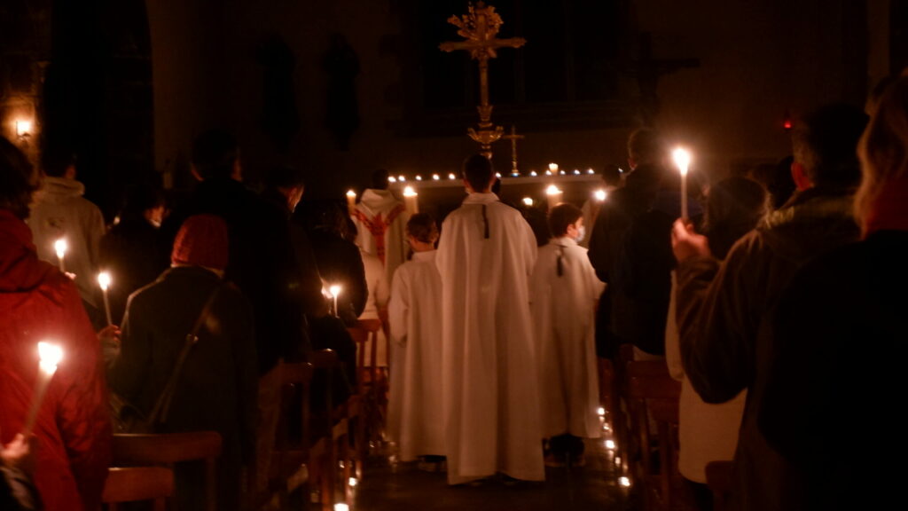 La messe est célébrée à la lueur des bougies afin que cette liturgie matinale fasse des fidèles de l’assemblée des « guetteurs d’aurore » qui attendent dans l’espérance l’avènement du messie promis, le Christ.
